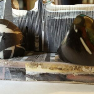Les premières étapes de la création d’un « monobloc ». Scellement des pierres dans les moules . Après l’arasage et la mise à niveau des pierres avec les autres éléments du « moule structure » la couleur et les dessins se profileront déjà.