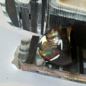 Le même processus s’opère pour le travail des autres matières : Ivoire fossile (Mammouth) , Ivoire végétal ( Corozo ) la corne de Zébu , Ambre de la Baltique . autant pour la réalisation de la structure que pour les inserts décoratifs.