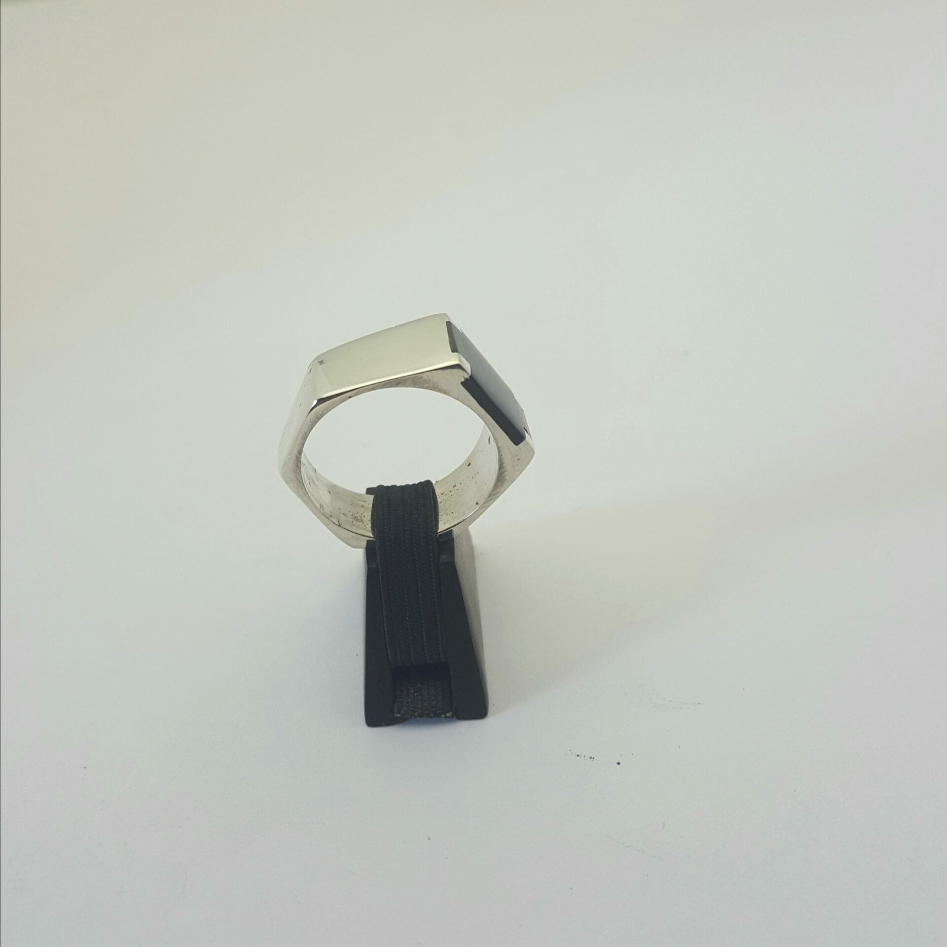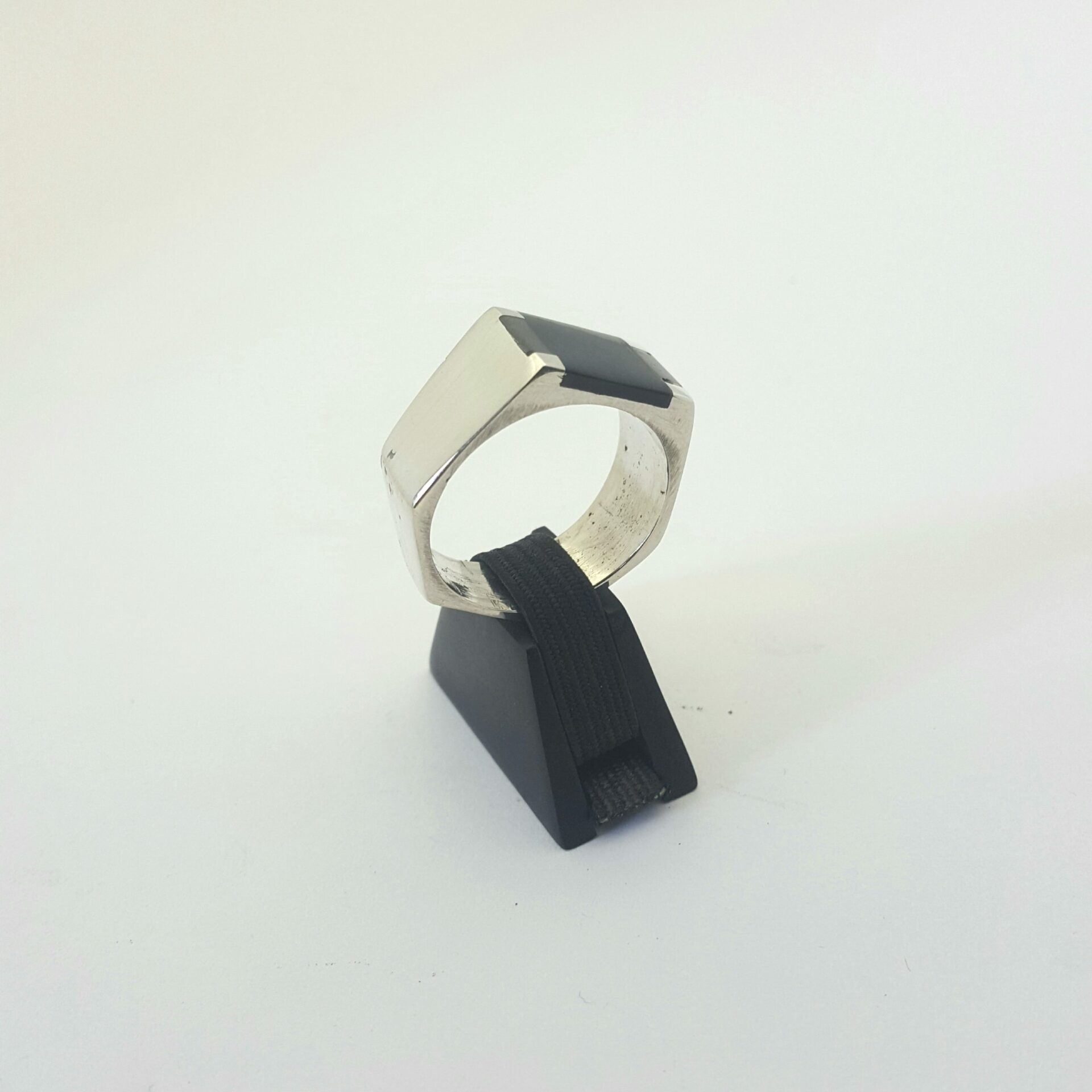 Bague corne argent est en corne ou en ébène . La corne , cette matière naturelle se scie , se ponce et se polit pour ensuite s’insérer parfaitement dans la cuvette en argent de la bague .